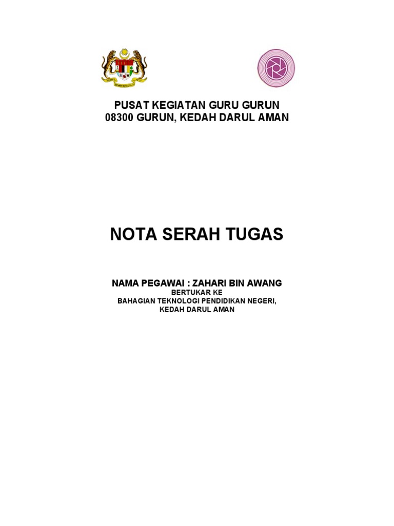 Contoh Nota Serah Tugas 2022 Cara Buat Panduan Format Word Pdf Portal Cikgu